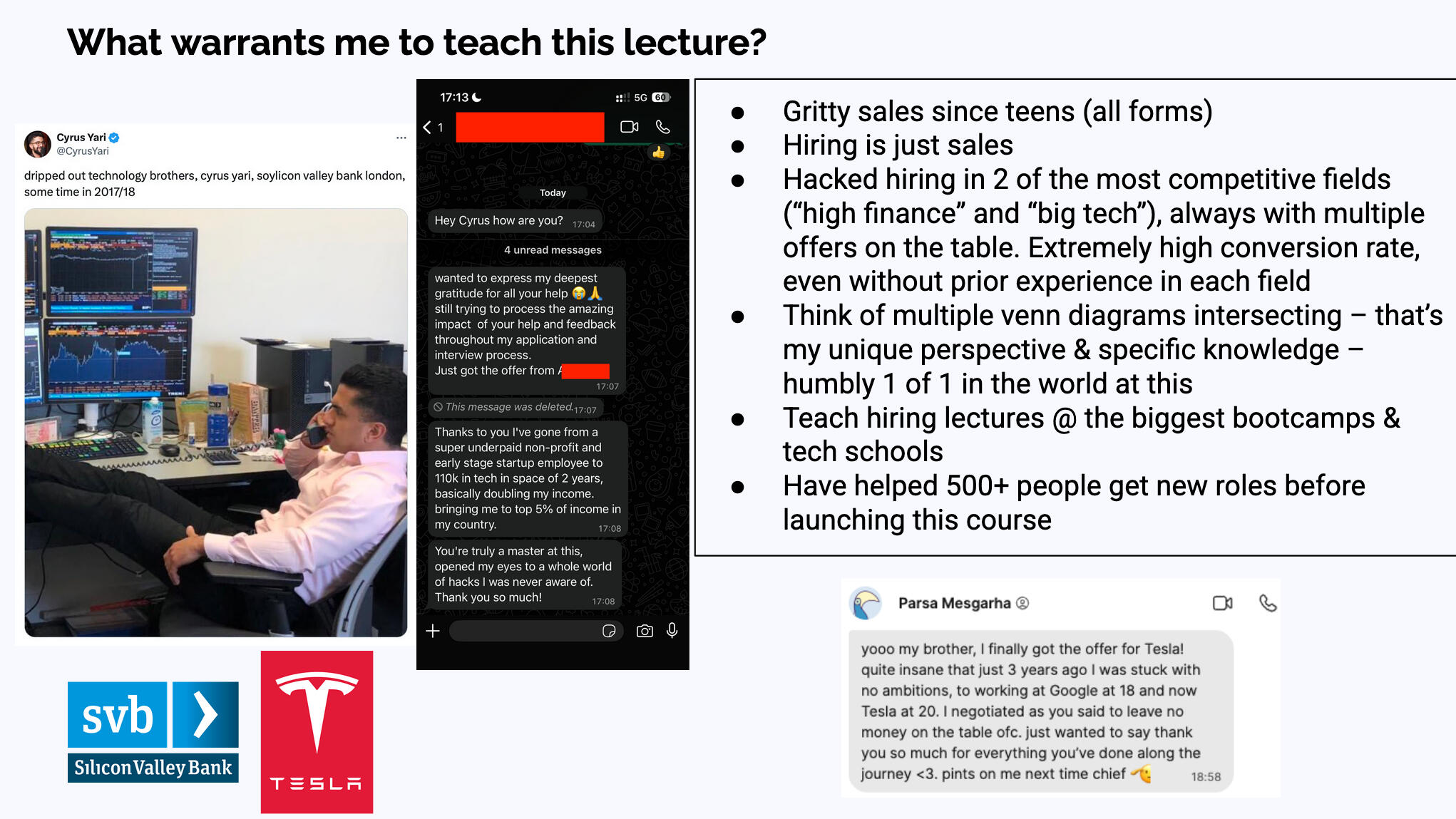 After helping 500+ people land new roles, I’m finally doing it at scale — affordable and accessible for everyone. No gatekeeping, just a full brain dump of everything I know, plus all the resources.I’ve helped them all — whether you’re just starting out, changing careers, or have decades in the industry. This course covers every corner of tech, across all roles, technical and non-technical.Getting a job is an entirely different skill set from doing the job.